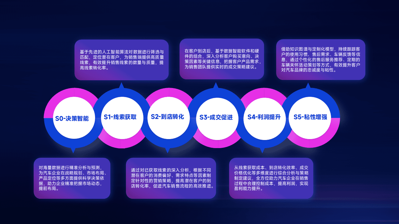 通过拓宽潜在客户来源、、、、优化线索分配并提高到店转化率,,,以增强销售效率。。同时,,,利用线索数据不断优化分析模型,,,有效提升转化率,,,扩大营销影响力。。。。